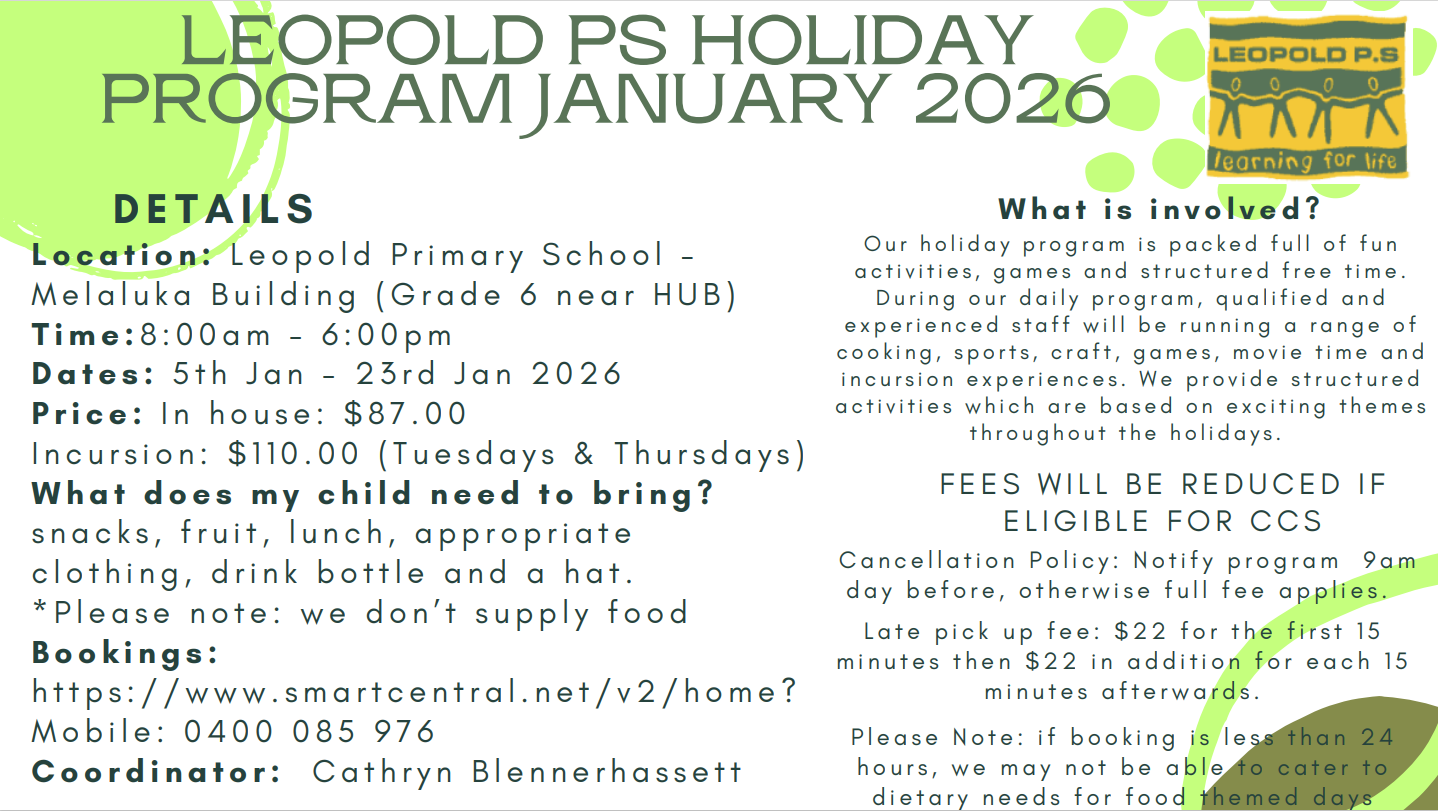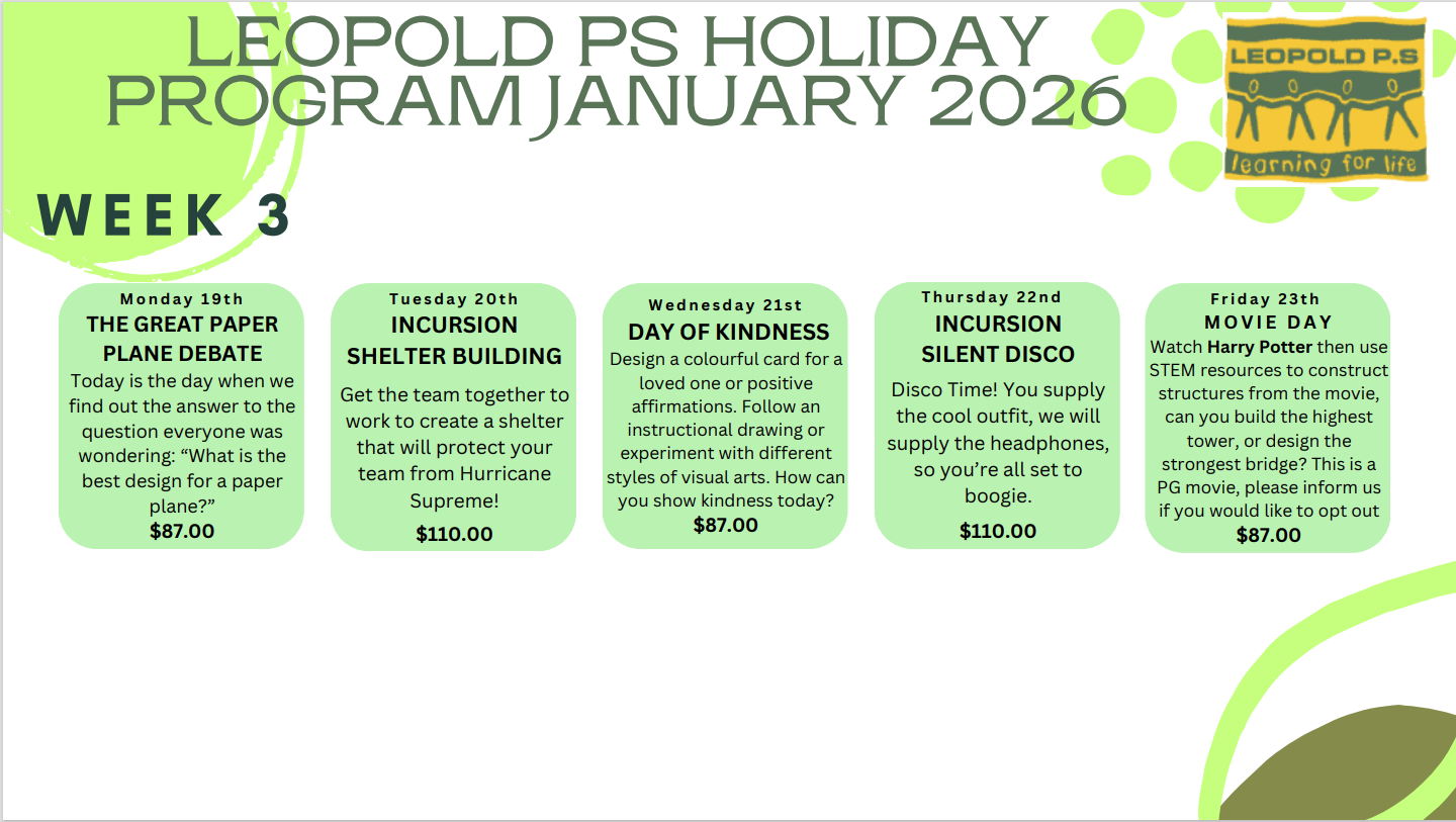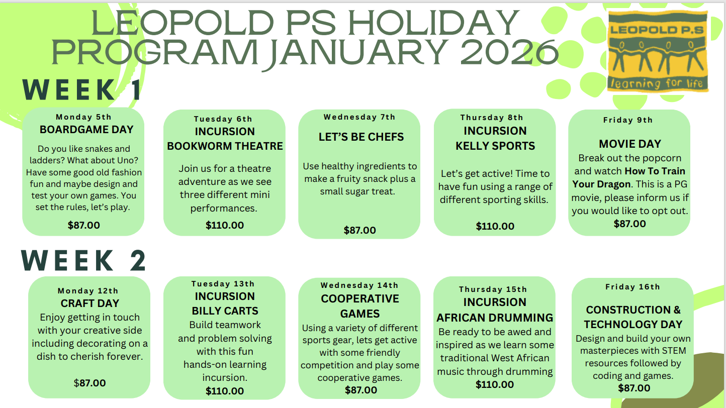 The January 2026 School Holiday Program is now open for bookings. Click on the